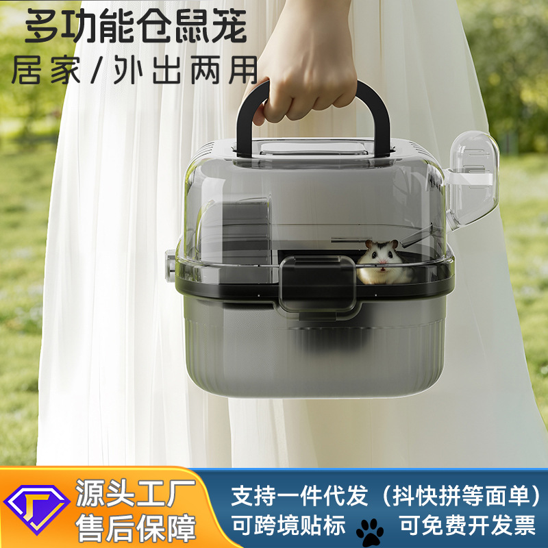 户外仓鼠笼子便携外出笼花枝鼠金丝熊全景别墅小宠用品手提仓鼠笼