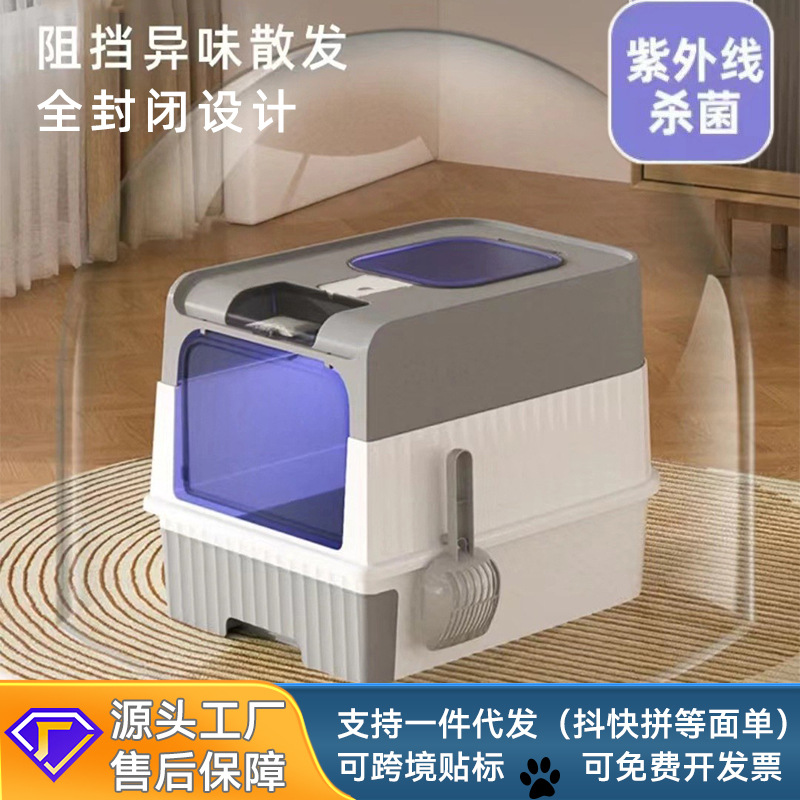 猫砂盆超大号防外溅全封闭顶入式杀菌防臭貓砂盆工厂批发猫厕所