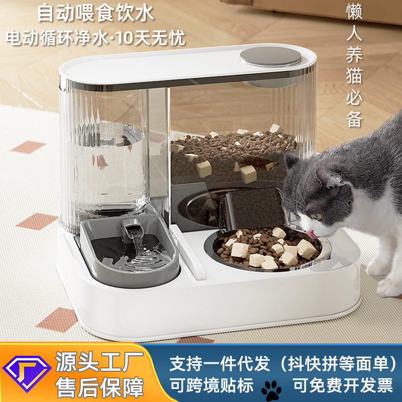 新品猫咪水粮一体猫碗饮水机二合一宠物喂食盆自动喂食器喂水碗