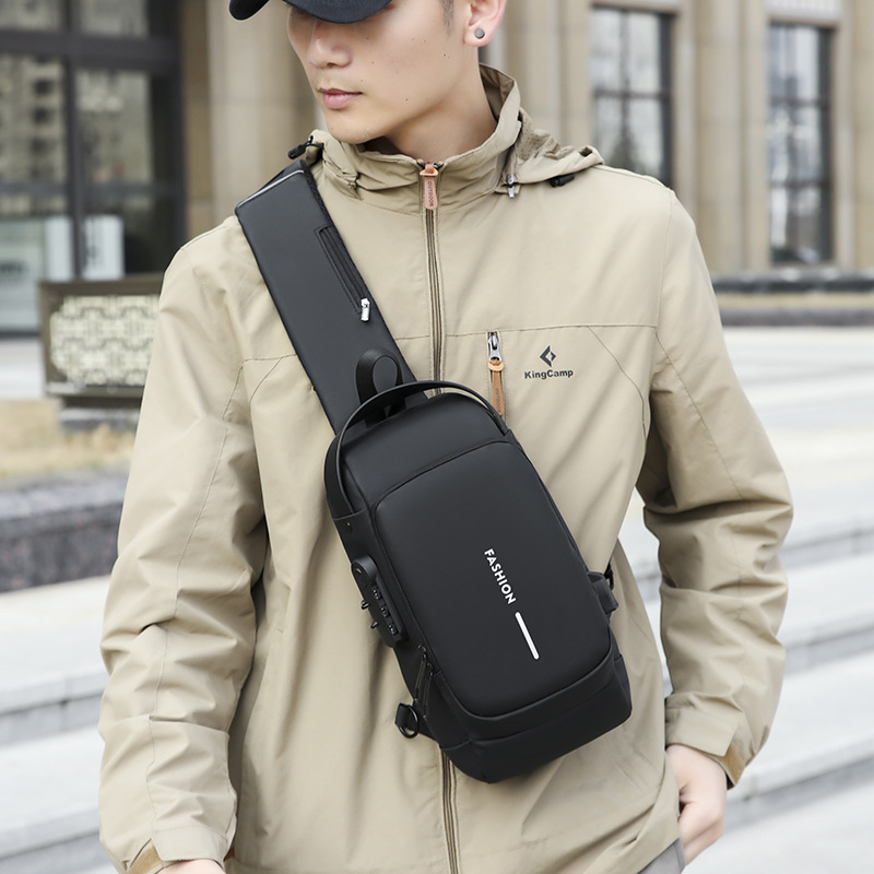 男士胸包机车休闲运动单肩斜挎包休闲夏季胸前包防盗密码锁手提包