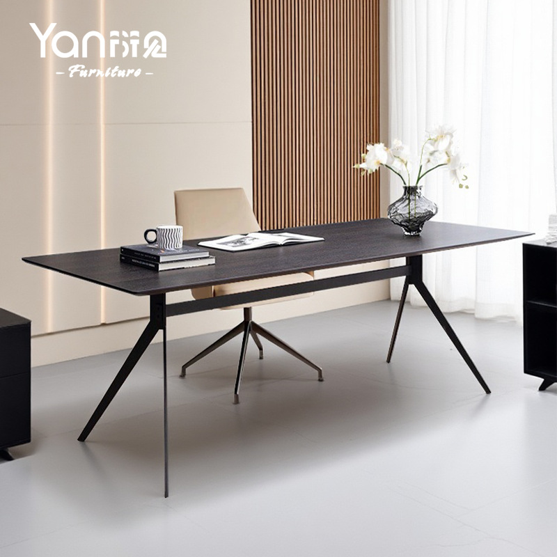 意式极简书桌办公会议长桌现代轻奢客厅大长实木设计工作台电脑桌