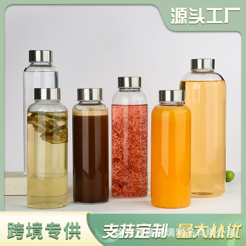 厂家批發高硼硅玻璃瓶专用便携水瓶不锈钢盖玻璃冲泡瓶饮料空瓶子