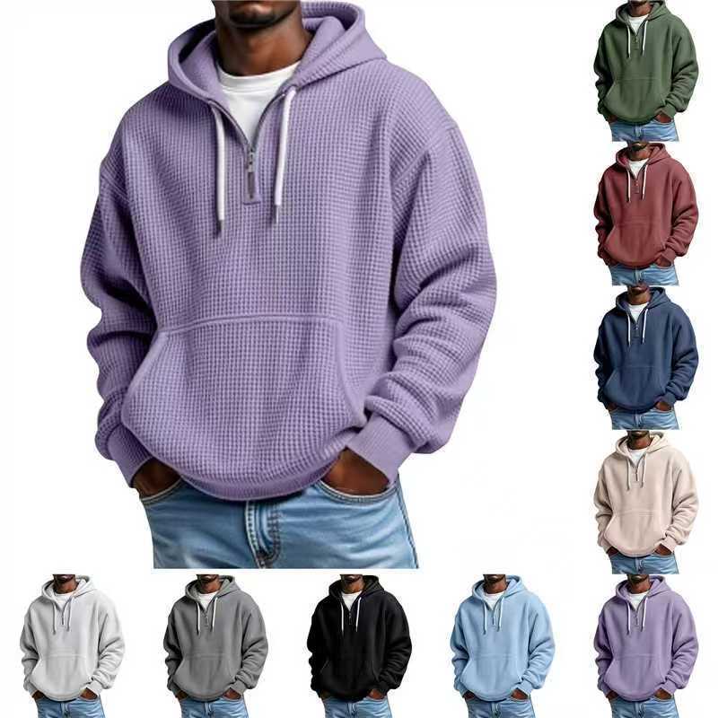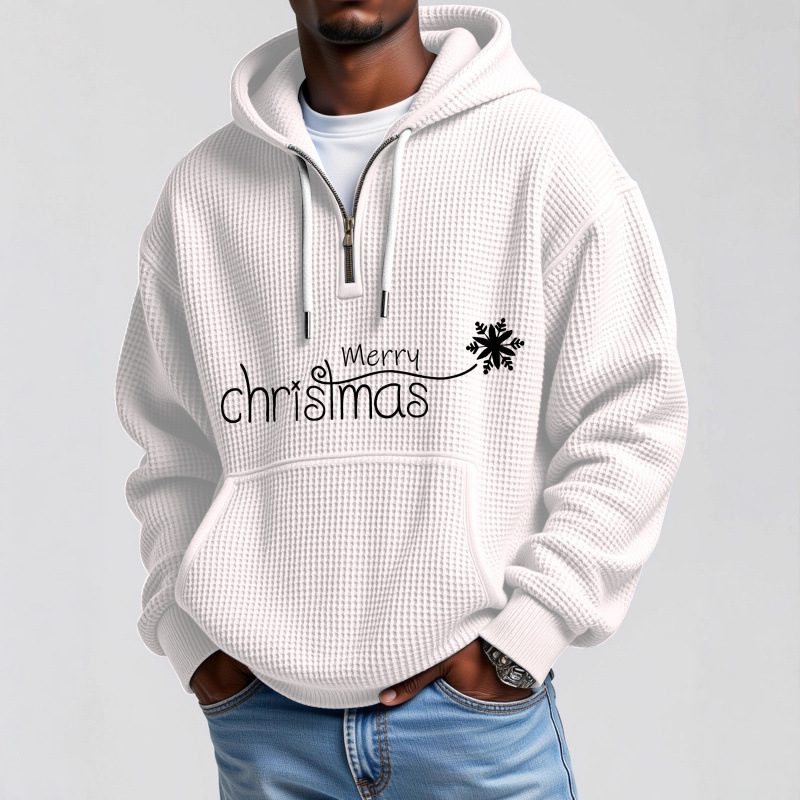 2025跨境欧美亚马逊华夫格面料卫衣圣诞节风半拉链印花男士连帽衫