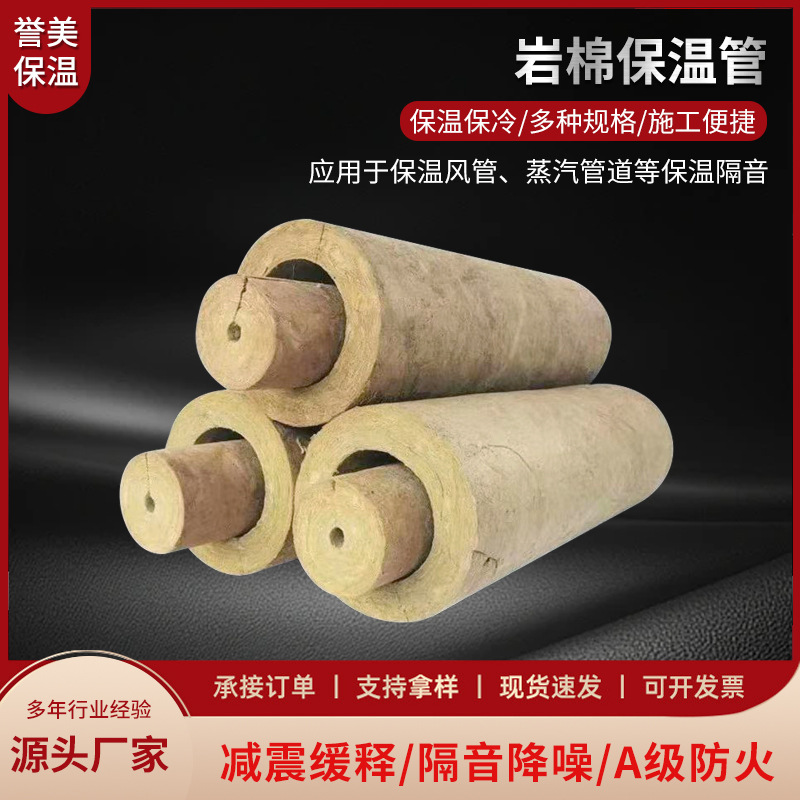 现货岩棉保温管阻燃隔热岩棉管壳无毒防火保温管道防火阻燃管道