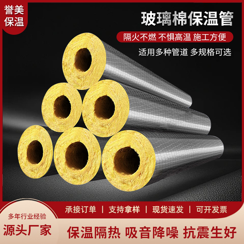 现货玻璃棉保温管蒸汽管道保温管壳防火耐高温铝箔贴面玻璃棉管壳