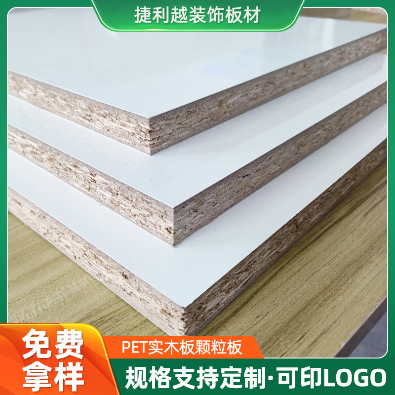 PET实木板颗粒板厂家批发家具实木多层无醛刨花板三聚氰胺贴面板