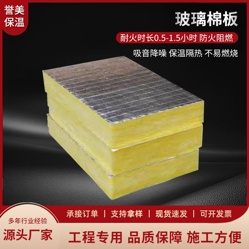 玻璃棉板风筒防排烟隔墙填充隔音降噪阻燃保温玻璃纤维棉板带铝箔