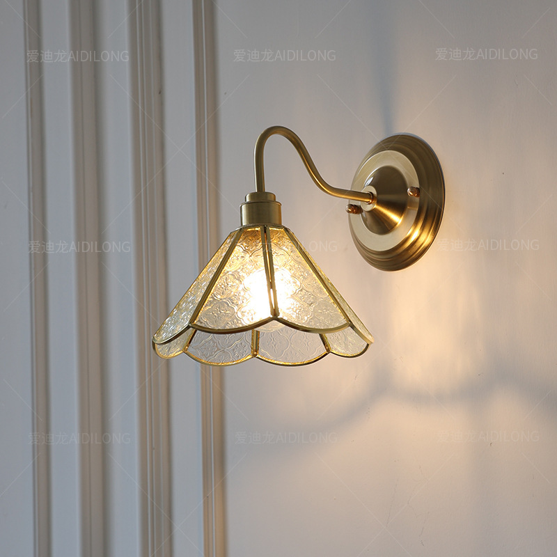 复古黄铜玻璃壁灯 老上海卧室床头餐厅酒店客房商场民宿咖啡厅壁
