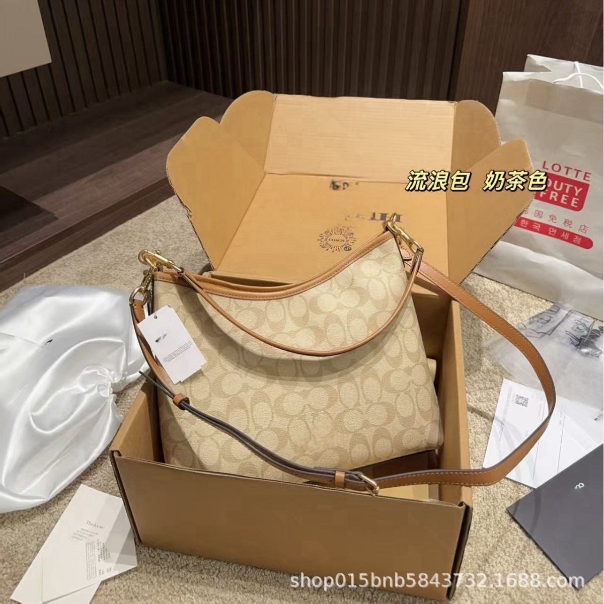 寇家Laurela单肩奶茶色老花纯色斜跨托特腋下包大容量流浪包百搭
