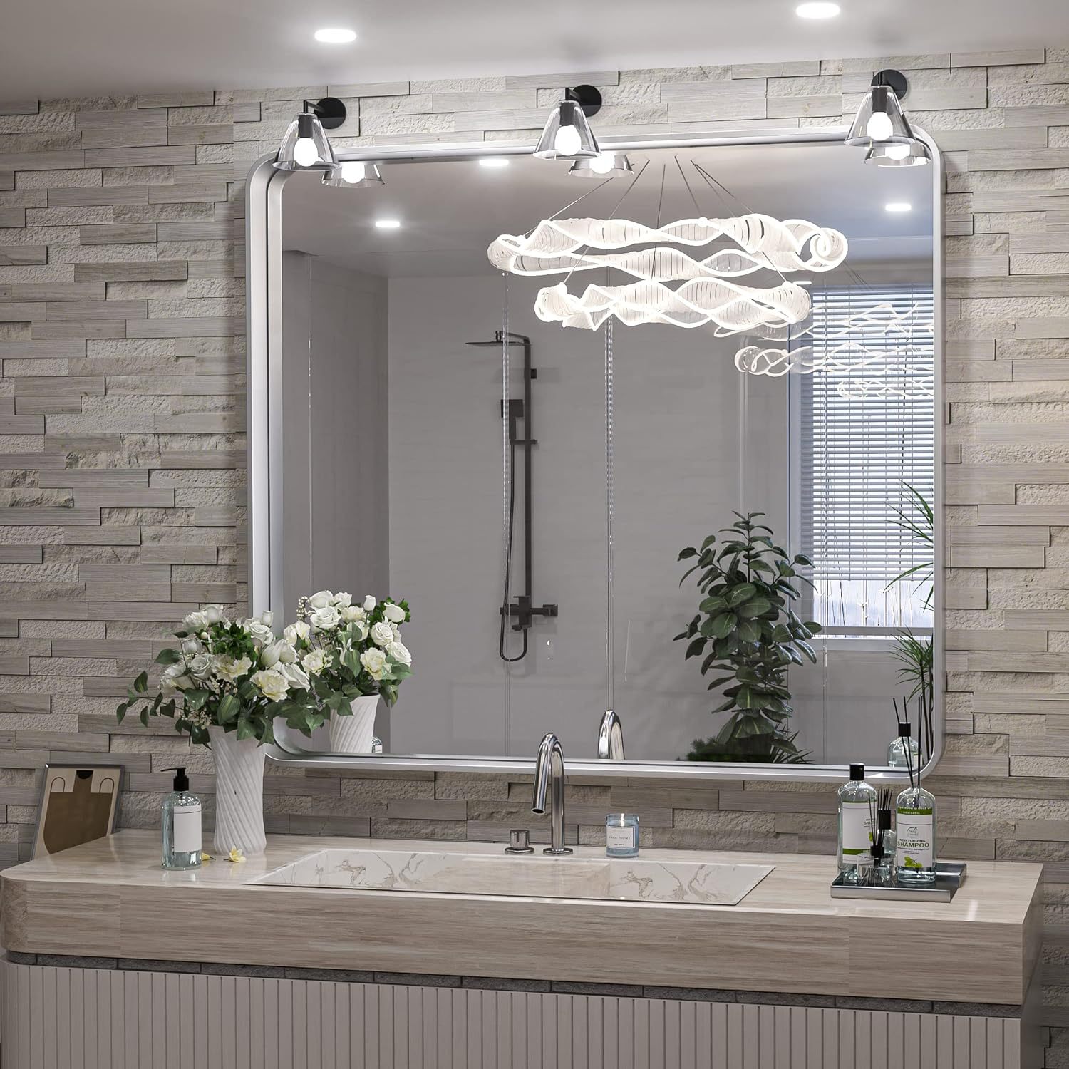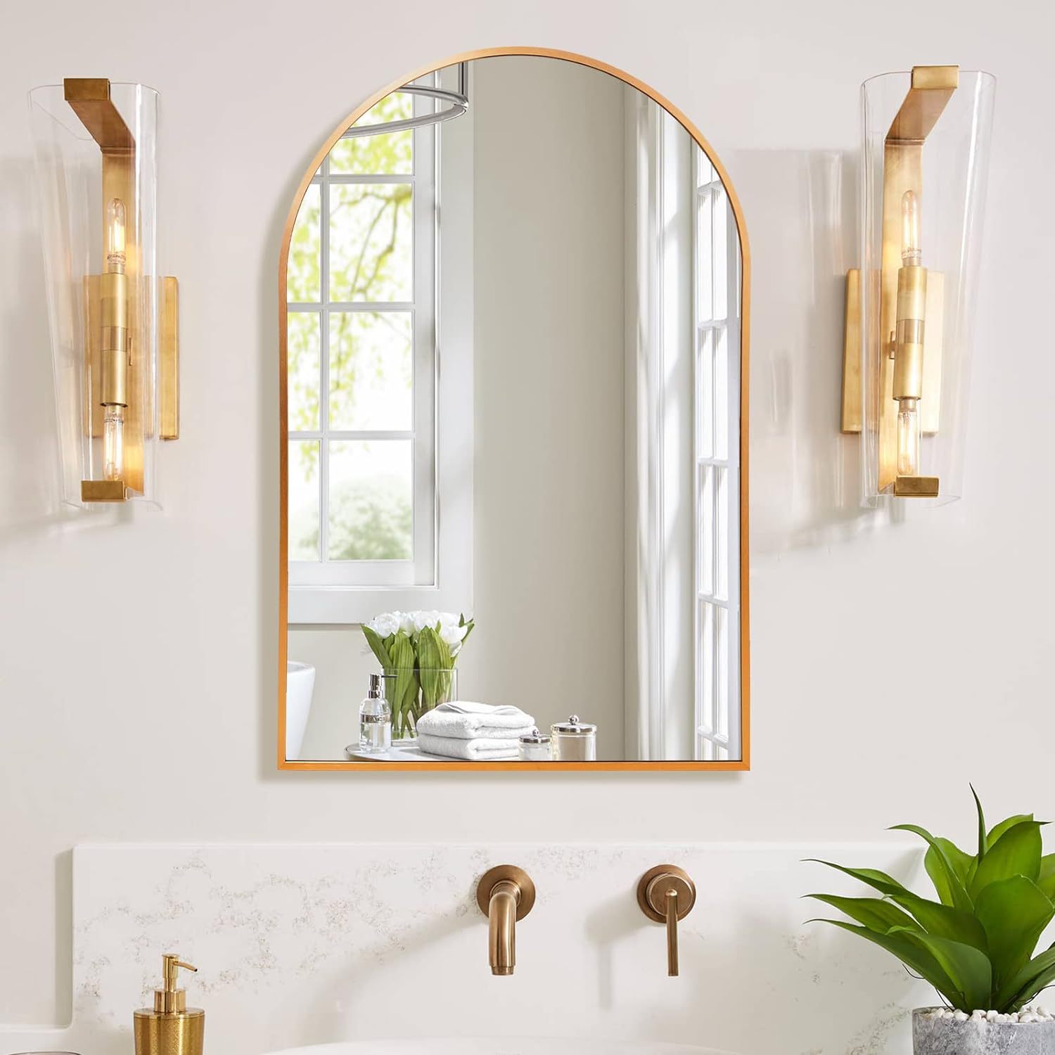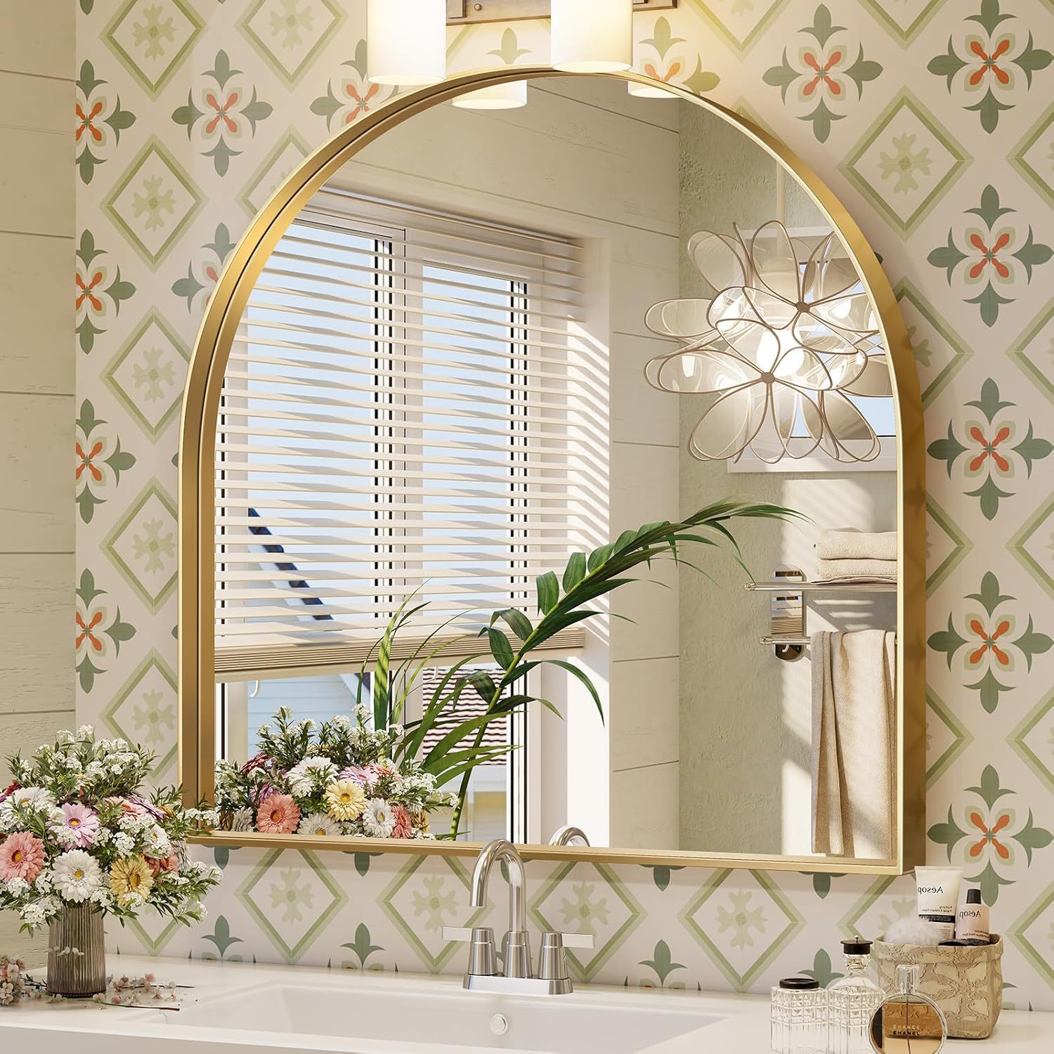 法式轻奢不锈钢浴室镜洗手间拱形卫生间壁挂镜洗漱台超白镜