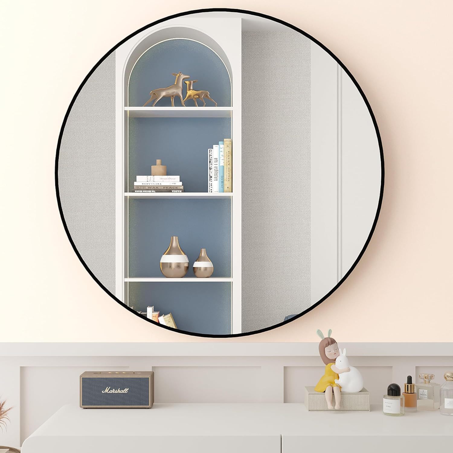 北欧卫生间浴室镜铝合金圆框化妆镜洗手间卫浴壁挂耐用防爆镜