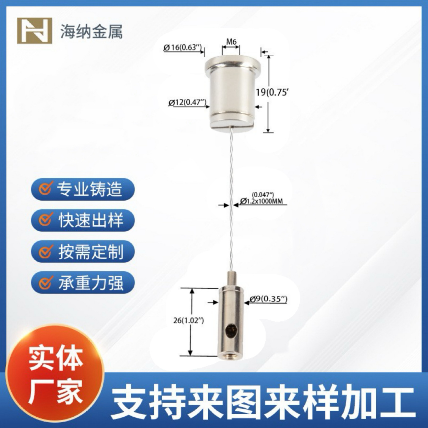 家电商用面板灯广告牌吊码 横孔锁线器保险绳集成钢丝吊绳配件