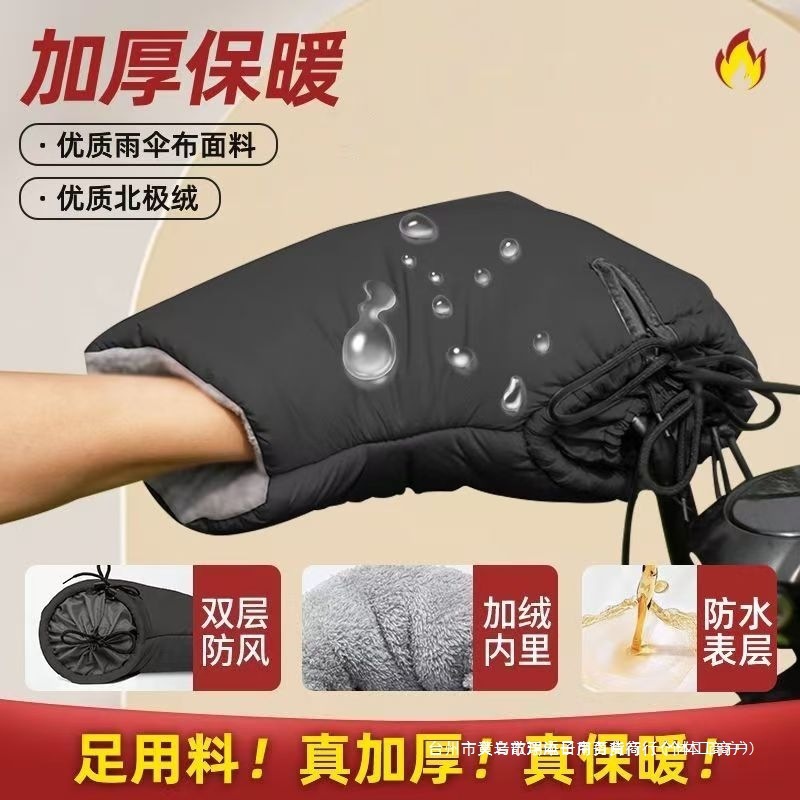 电动摩托车手把套冬季保暖电瓶车手套防水挡风手套加绒加厚棉把套