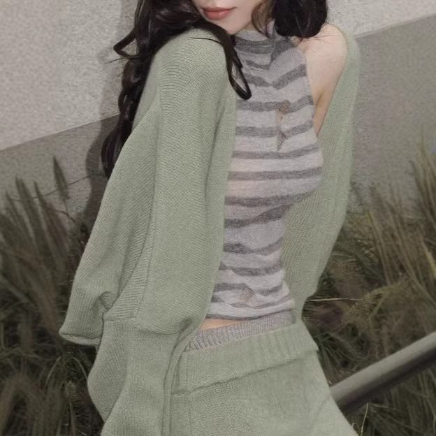 Bulletnin羊毛慵懒蝙蝠袖斗篷淡人高智开衫外套针织短裙毛衣套装