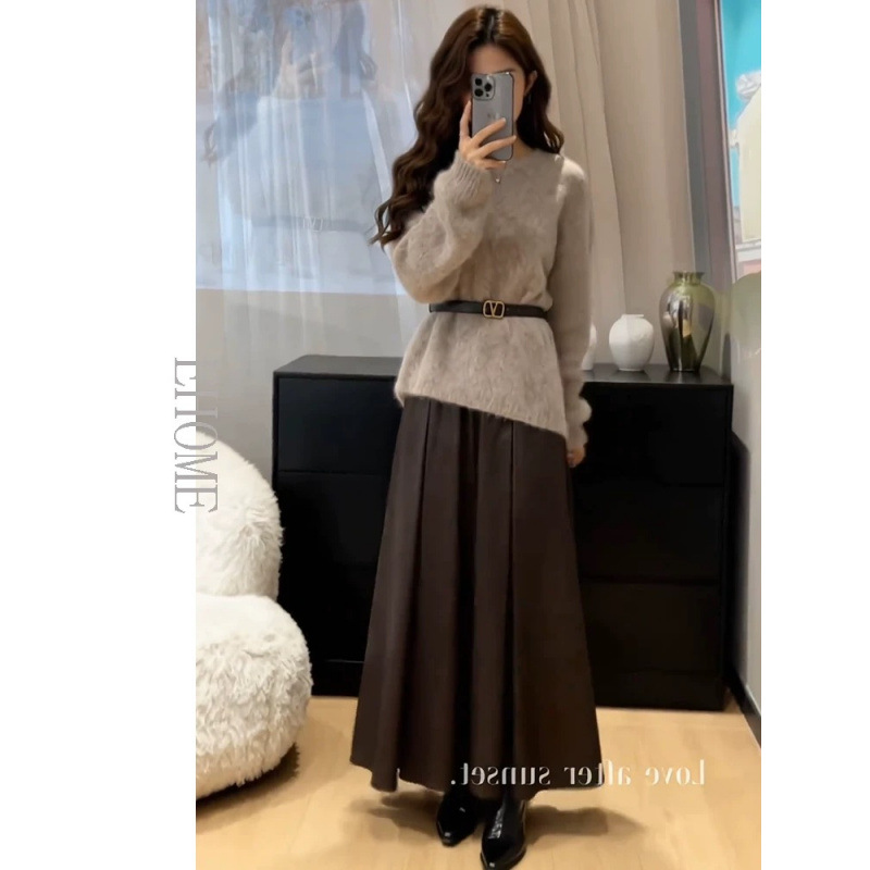 2025年超火冬装一整套法式慵懒气质高级感灰色针织衫两件套装裙女
