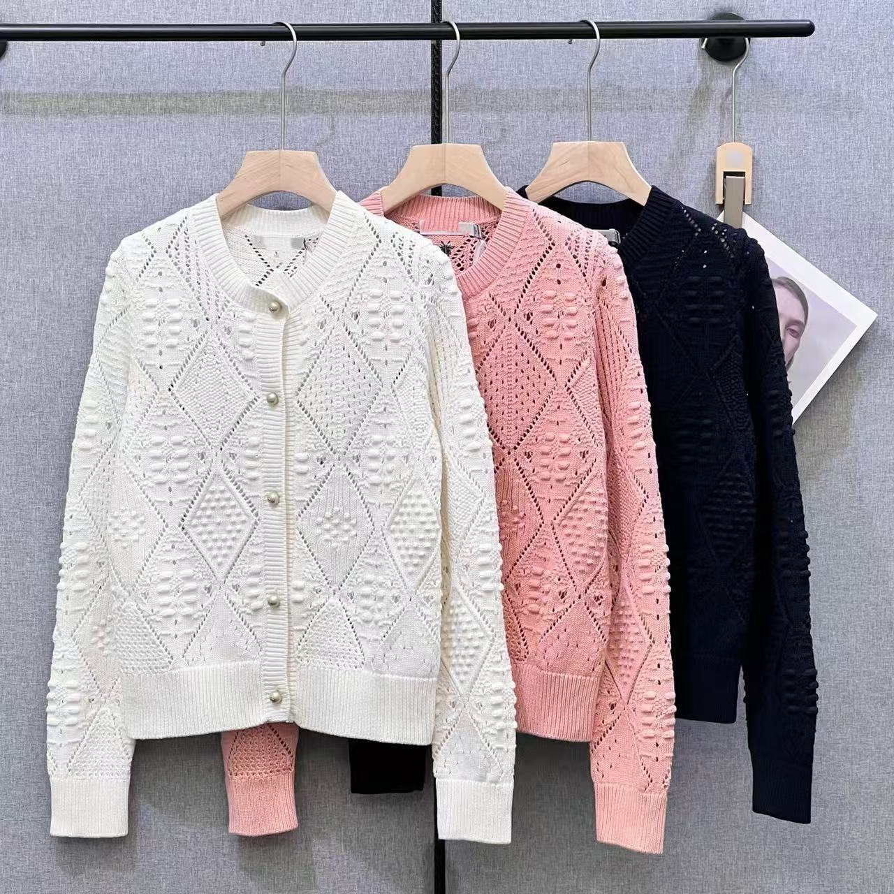 南油高定D家25新款菱格纹镂空钩花针织开衫香风气质减龄毛衣外套