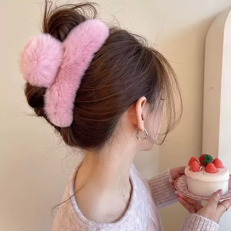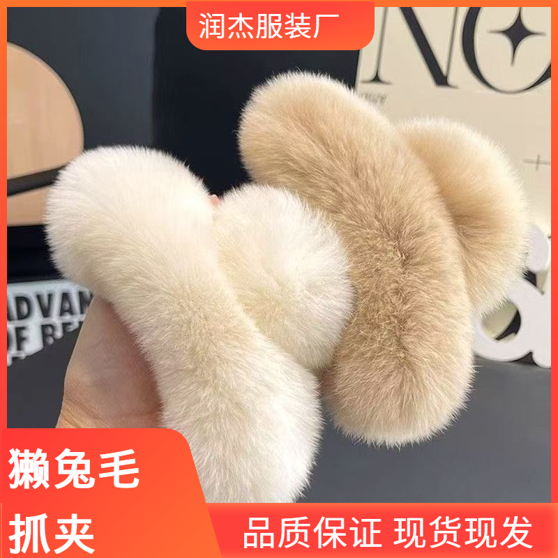 真獭兔毛后脑勺抓夹网红高级感后脑勺毛毛发夹可爱秋冬毛绒头饰