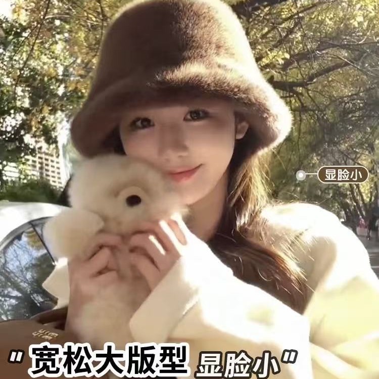 秋冬毛绒渔夫帽女减龄显脸小女士帽子女款户外防风保暖拉夫小香风
