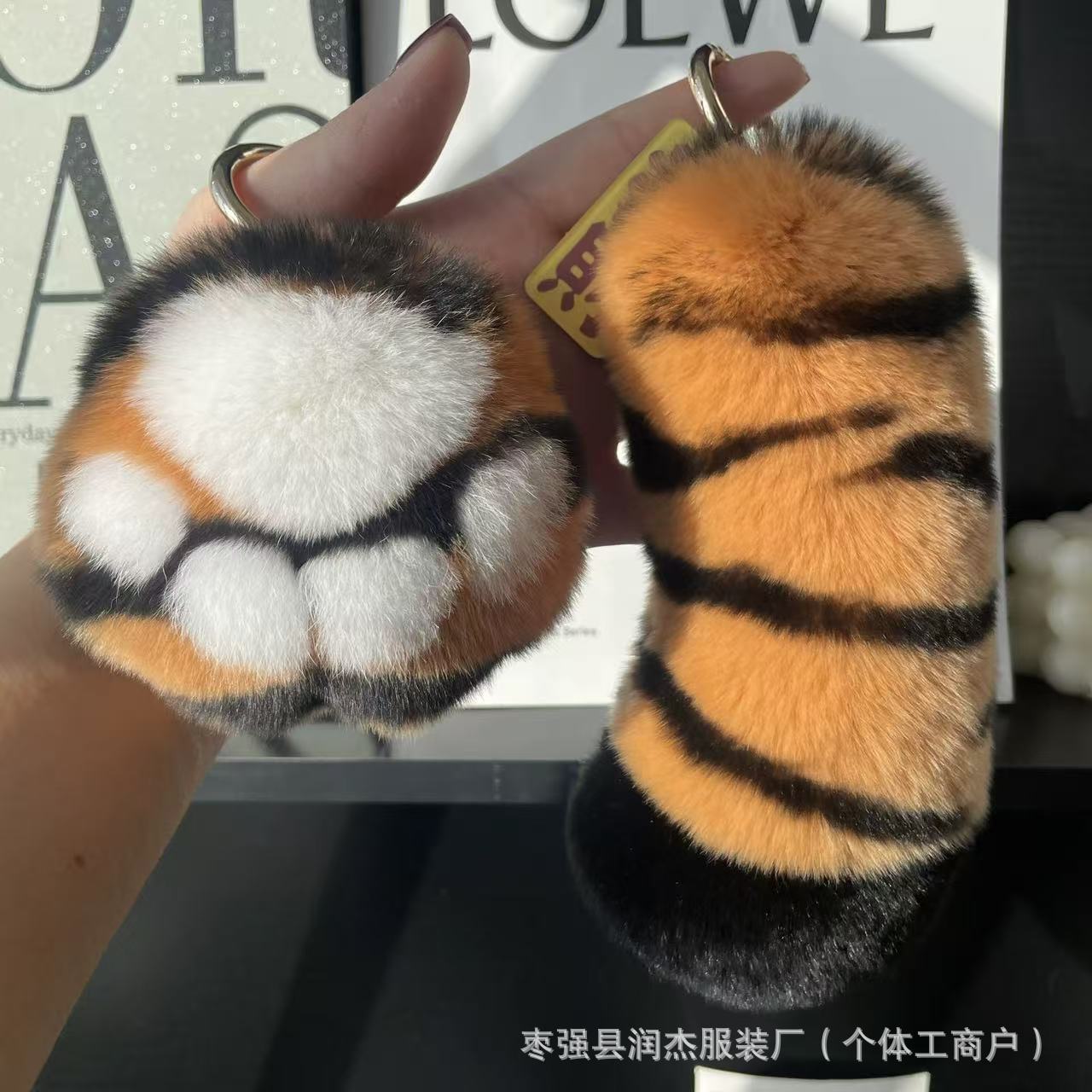 可爱毛绒老虎尾巴真獭兔毛汽车钥匙扣挂件ins网红书包包挂饰