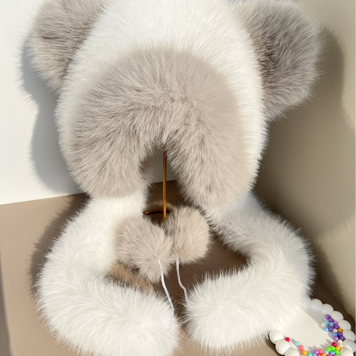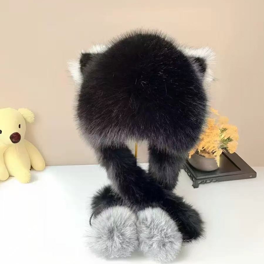 冬季新款双色狐毛绒帽子围脖一体仿狐狸毛户外防风保暖加厚雷锋帽