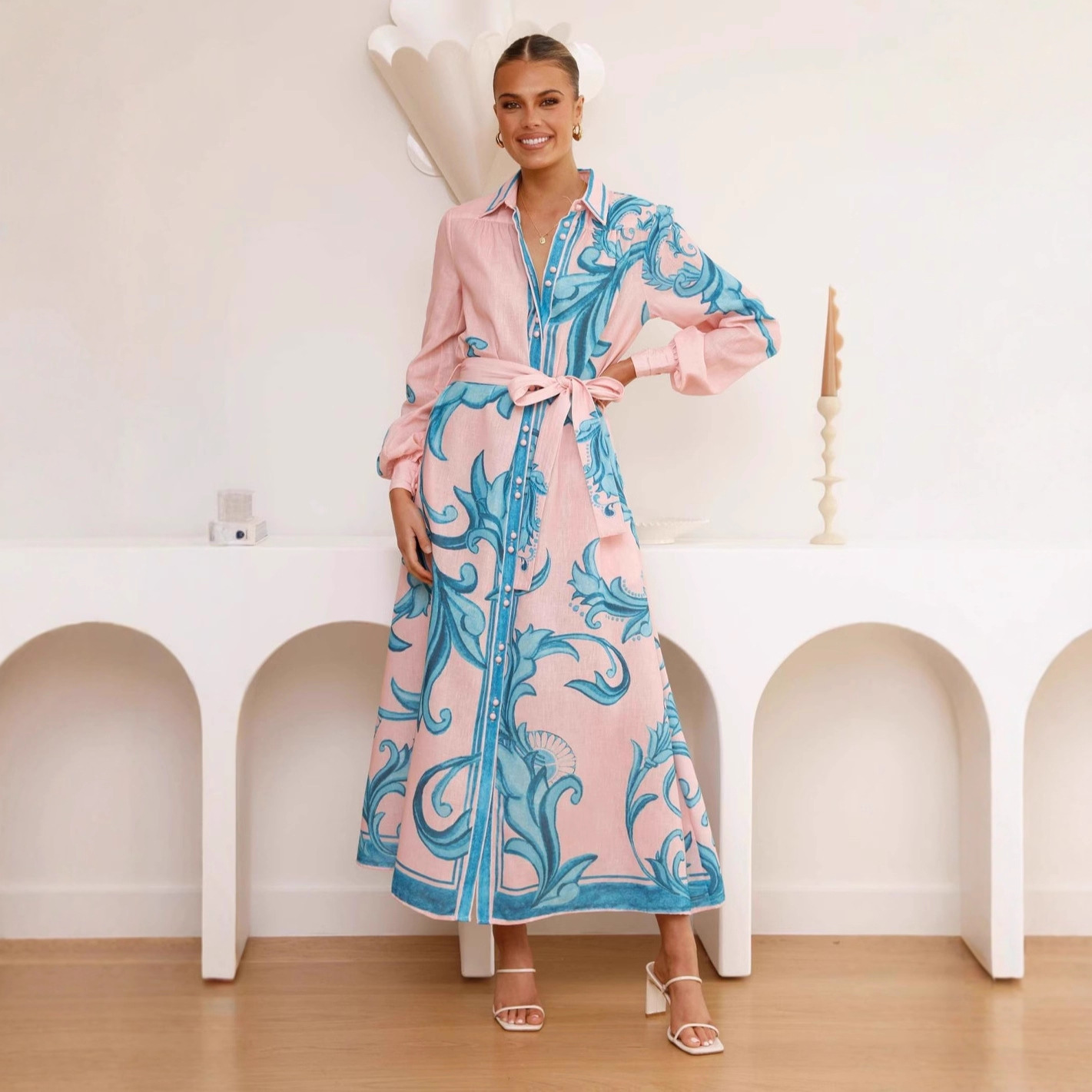欧美跨境2025新速卖通独立站休闲时尚亚麻衬衣开衫气质百搭连衣裙