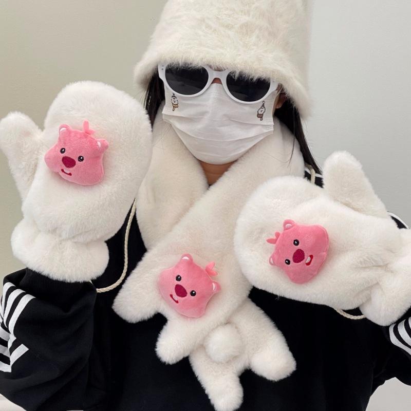 秋冬季防寒加厚毛绒绒狐狸耳朵帽子围巾一体保暖雷锋帽护颈显脸小
