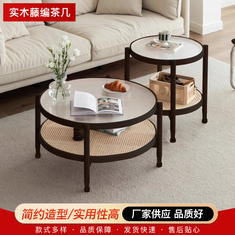 奶油风简约茶几家用客厅大小茶几组合厂家供应小户型圆形玻璃茶桌