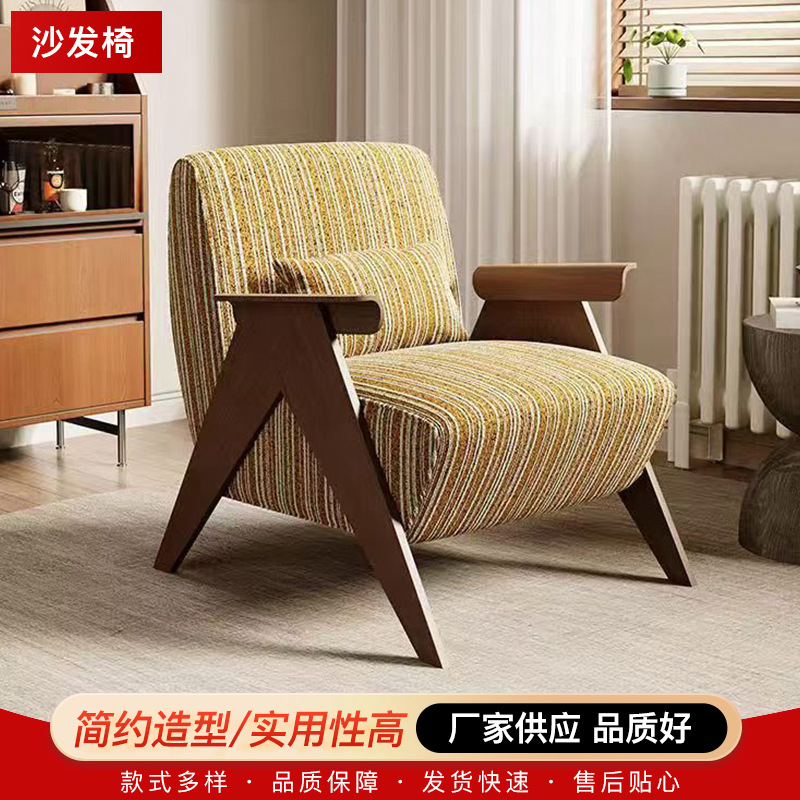 简约沙发椅中古风侘寂风设计款客厅复古实木休闲椅单人沙发