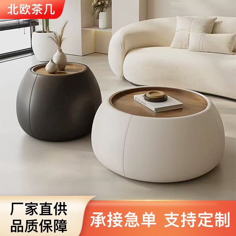 轻奢奶油风茶几家用公寓圆形大小茶几组合小户型创意储物小茶几