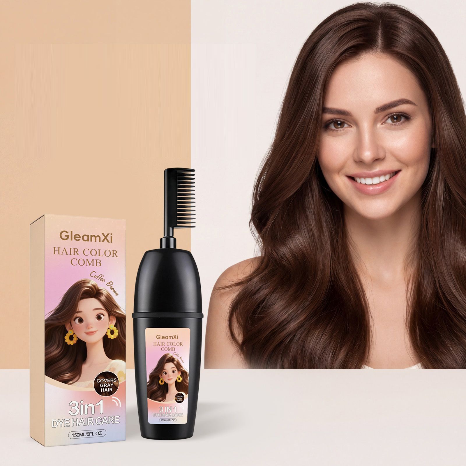 GleamXi 植萃美发梳(咖啡粽色)日常头发遮盖温和易上色美发梳