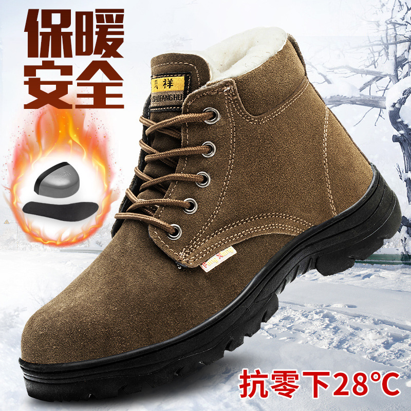 劳保鞋男高帮冬季加绒钢包头防砸防刺穿电焊工地老保安全工作棉鞋