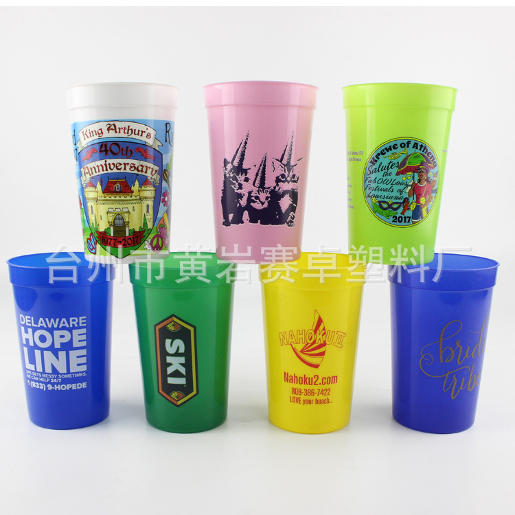 欧美16oz广场杯子 体育场杯 塑料水杯 塑料广场杯广告礼品环保