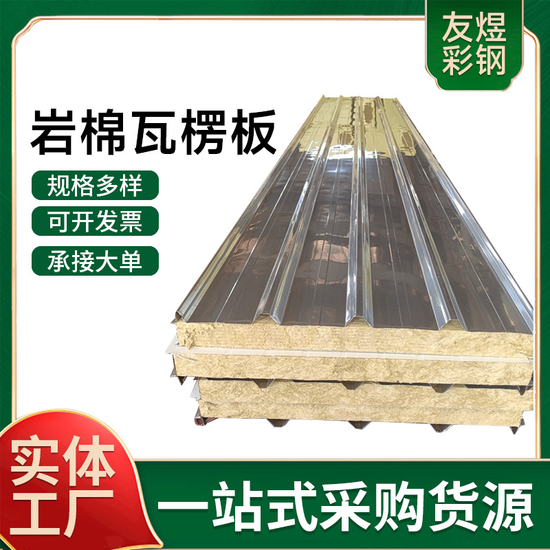 【厂家定制】岩棉瓦楞板夹芯板厂房屋顶防火保温防潮隔音板厚彩钢