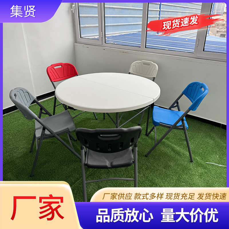 家用简易圆形折叠餐桌酒店民宿便携式塑料桌户外夜市烧烤大圆桌