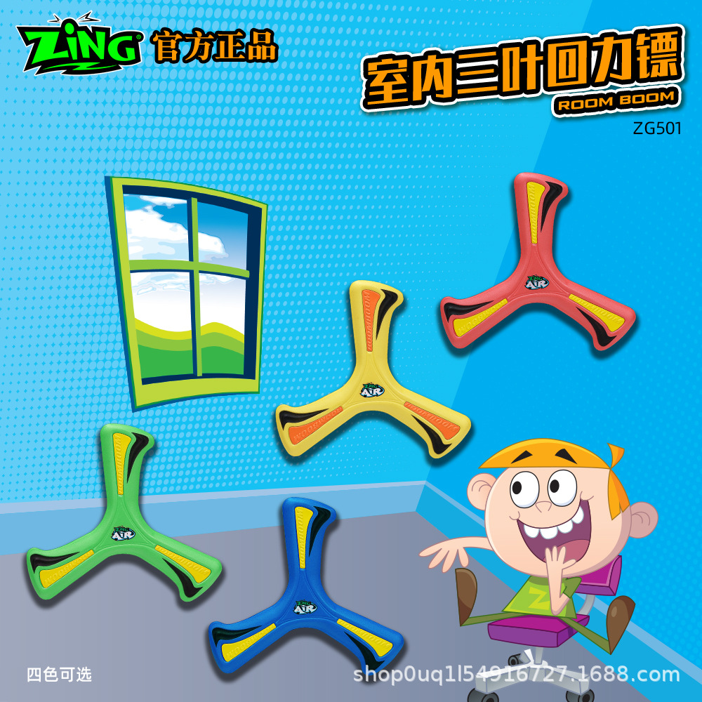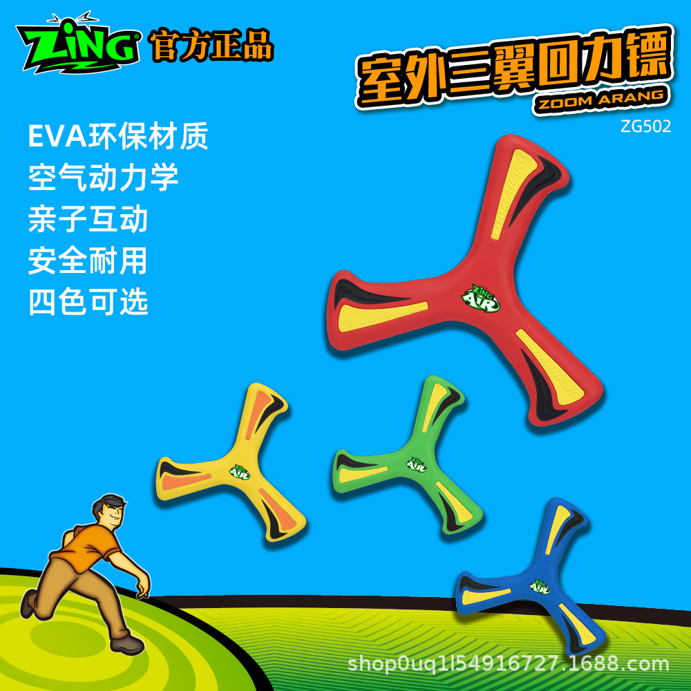 ZiNG出口美国品牌室内三翼回力镖玩具飞盘软胶飞来飞去回旋2023新