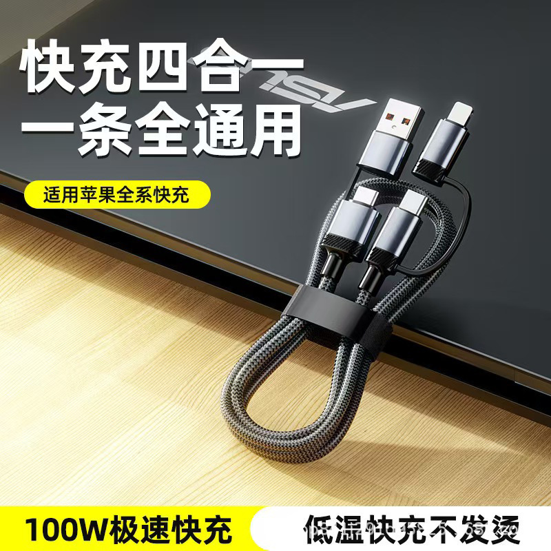 适用华为苹果双TYPE-C超级四合一快充电线PD快充100W二转二数据线