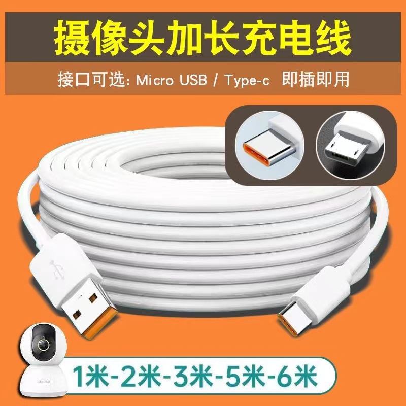 数据线适用小米摄像头监控手机充电线3m5m延长线10米快充加长线