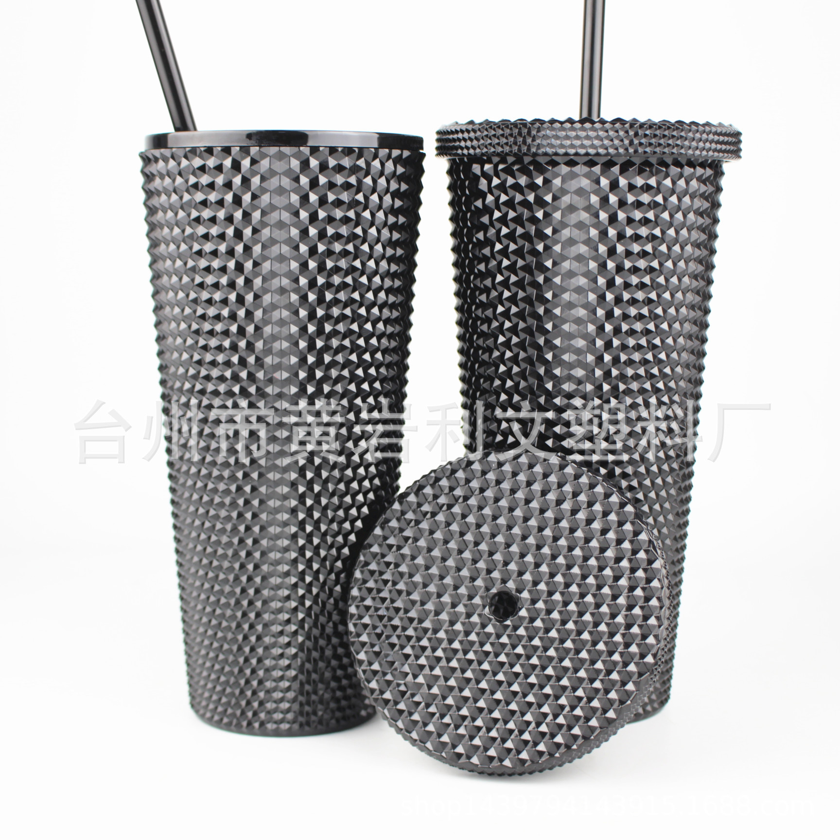 爆款22OZ双层吸管杯 PS双层塑料吸管杯 650ML大号果汁杯 可定LOGO