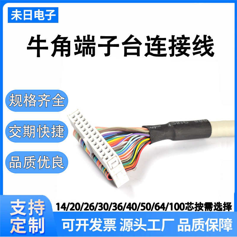 IDC2.54牛角头端子台连接线14/36/64/100芯plc伺服圆排信号屏蔽线