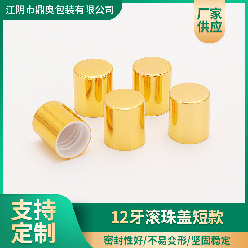 12牙滚珠盖短款 亮金拧盖螺旋盖化妆品分装瓶盖12牙电化铝旋盖
