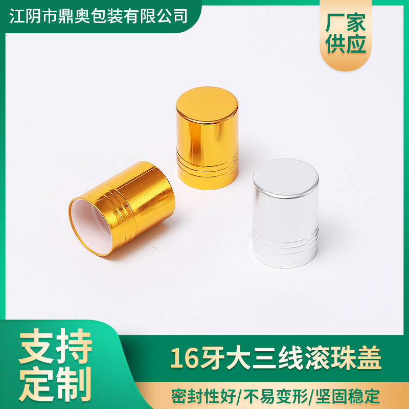 16牙滚珠盖 精油瓶大三线螺纹盖 金银色电化铝压丝滚珠盖