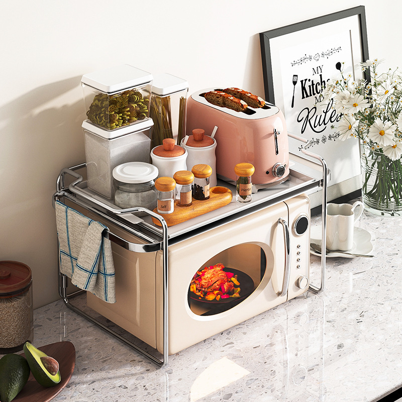 德国2026新款厨房置物架不锈钢微波炉烤箱收纳厂直发多功能跨境热
