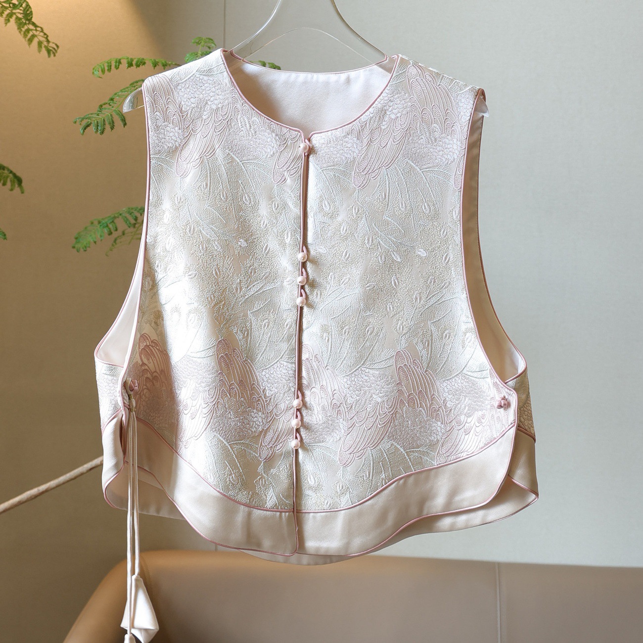 美约公社【羽毛精灵】轻国风洋气年轻满绣配挂坠两片式上衣马甲