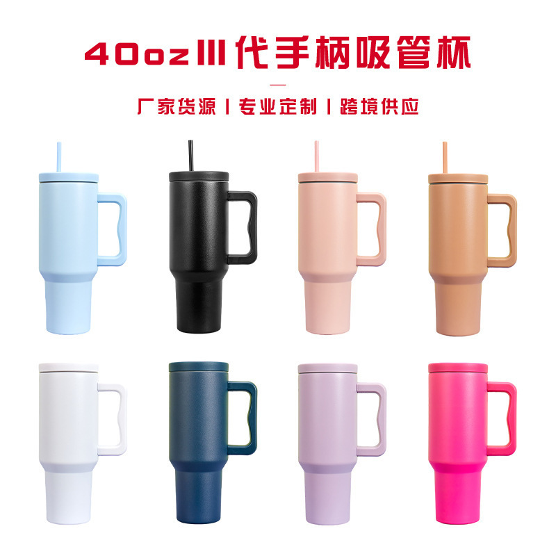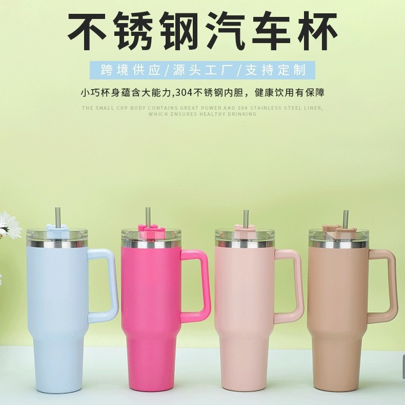 跨境不锈钢40吸管汽车杯泰国越南手柄保温保冷杯可印制定跨境爆款