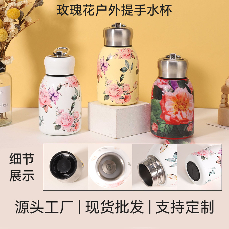 304不锈钢保温杯迷你小胖丁泡茶杯玫瑰花户外提手水杯便携礼品