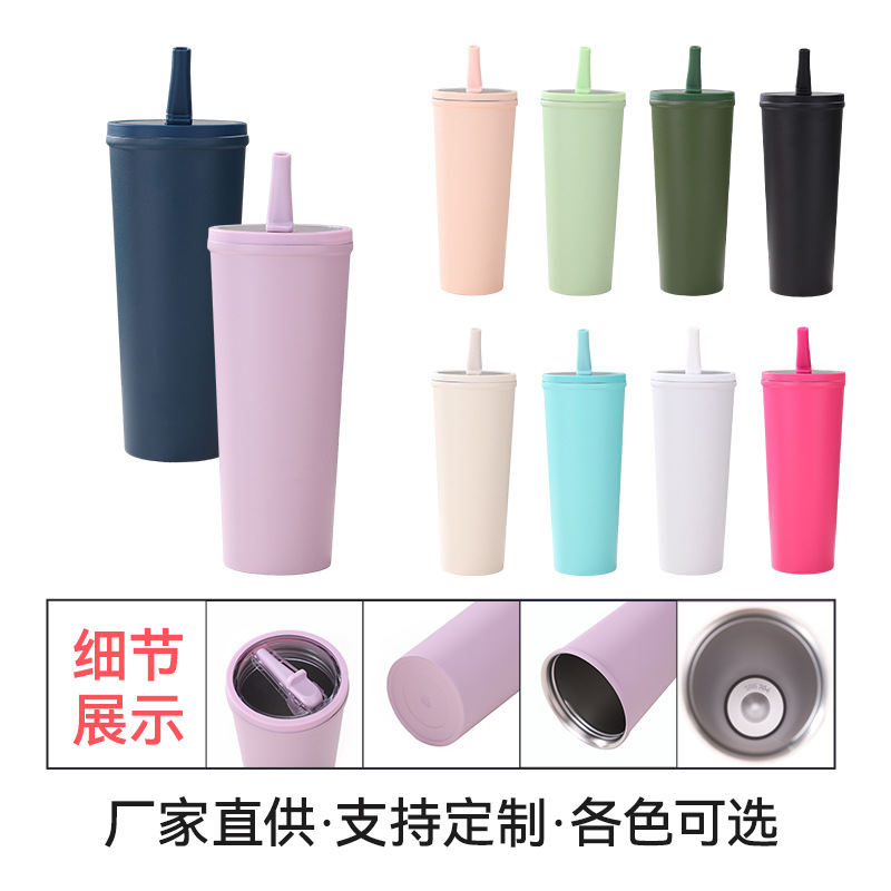 跨境新款304纯色不锈钢保温杯办公室鸭嘴吸管杯车载便携汽车水杯
