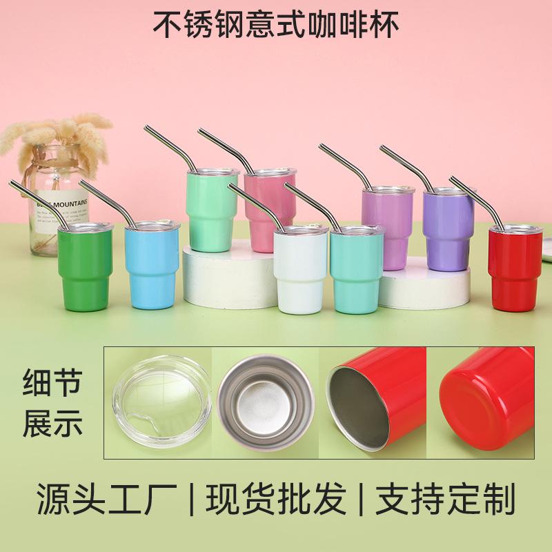 跨境亚马逊3oz迷你小酒杯304不锈钢带吸管保温杯便携彩色咖啡杯