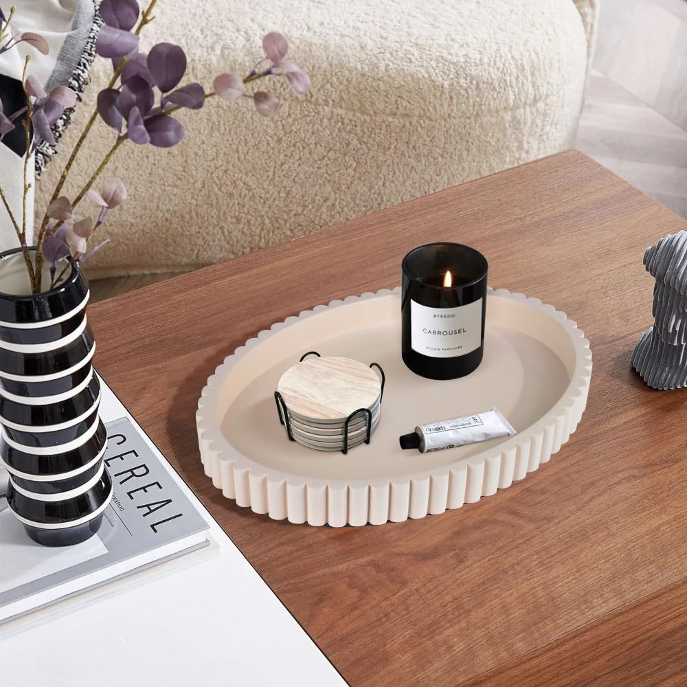 椭圆形水泥托盘 客厅咖啡桌收纳盘 侘寂风梳妆台置物托盘