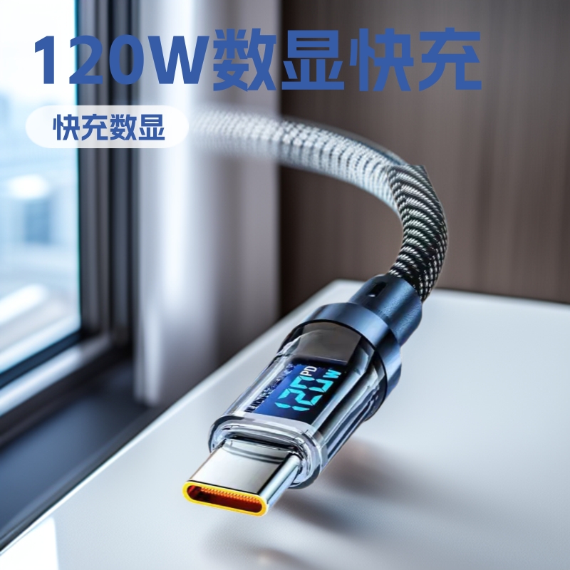冰透数显120W超级快充数据线 适用于苹果16华为CC/PD编织充电线