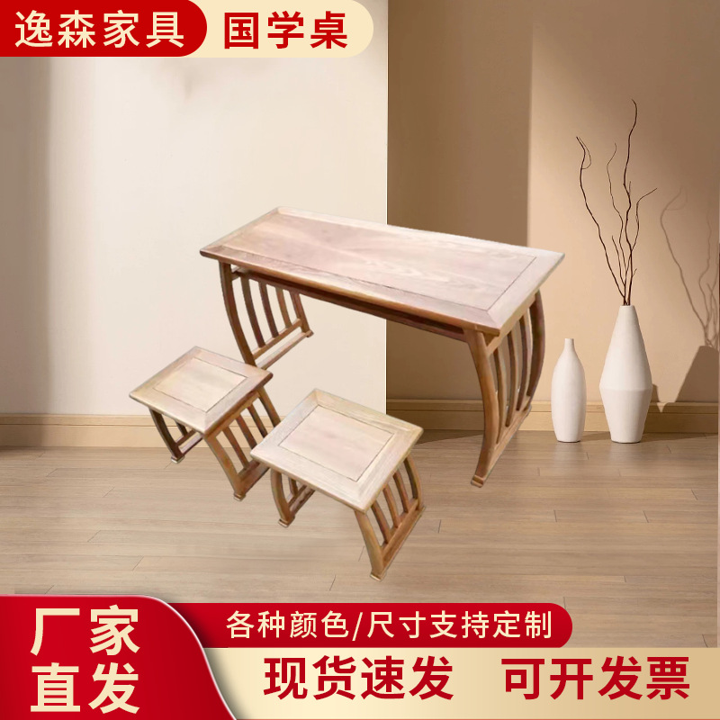 新中式实木仿古国学桌批发幼儿园学习桌椅培训补习桌学生课桌凳